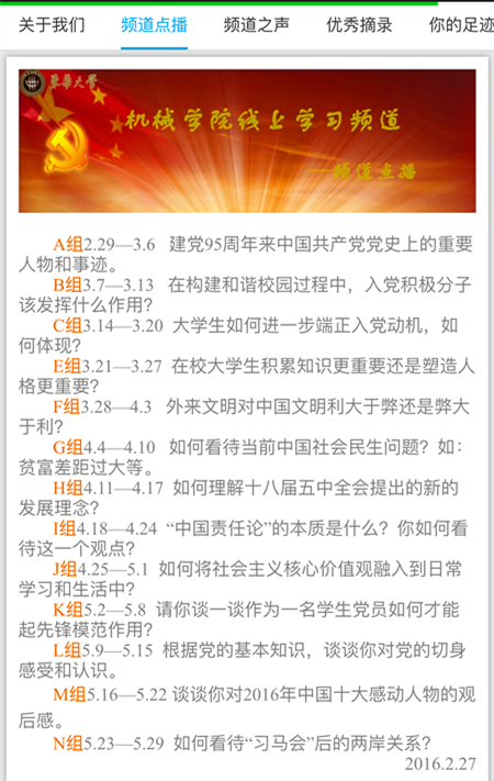 为了给广大学员提供一个发表个人观点的平台,使其在争论与探讨中深入理解党的政策与方针,提高党性修养,机械学院易班发展中心联合机械学院党校在易班上开通了名为“机械星期八”的线上学习频道,每期1个精选议题,为期一周,共12个议题,不间断推送。该线上频道自开通以来便引发学院老师、学生党员、入党积极分子和发展对象的热切关注,大家纷纷在易班上发表自己对议题的看法与见解。