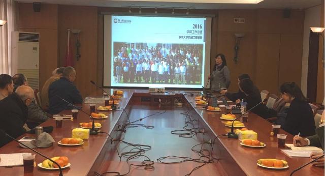 1月3日上午,机械学院在延安路校区第一会议室召开关工委分会2017年迎新春座谈会。院长张洁、党总支书记朱英、副院长徐洋、党总支副书记张千里、学院办公室主任王麟挥以及学院关工委分会全体老教师参加,会议由机械学院党总支书记朱英老师主持。