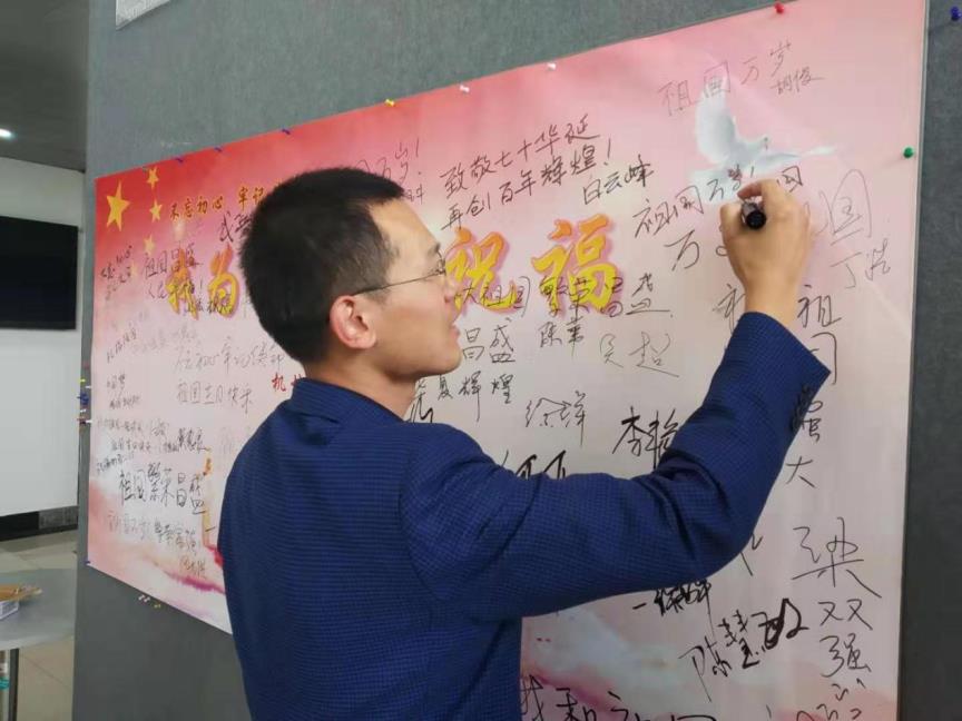 参加本次活动的老师,有现任学院领导,也有卸任的学院领导;有在职的老师,也有已经退休的老师。激情心头涌,敬意笔尖流,在三个小时的时间里,大家将祝福墙壁写得满满当当,将对祖国的祝福与赞美表达得淋漓尽致。