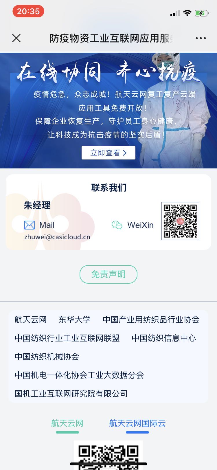 疫情爆发牵动着东华机械人的心。kaiyun官方登录入口院长张洁教授和智能制造研究所所长鲍劲松教授在大年初六(1月30日)紧急商讨如何利用现有研究成果和资源,为快速提升防疫物资产能贡献力量。商讨决定要发挥工业互联网技术优势,建设防疫物资工业互联网应用服务平台,提供透明准确的防疫物资产能情况,有效解决防疫物资保障工作中“缺材料、缺设备、缺专家、产能低”的问题,将团队从事工业大数据技术、工业互联网、制造资源调度、纺织服装领域网络化协同制造的研究成果应用于平台建设。之后,张洁教授和鲍劲松教授组织智能制造研究所老师,形成防疫物资工业互联网应用服务平台的建设方案,并汇报给俞建勇校长。俞校长在第一时间回复,给予了大力支持。中国产业用纺织品协会李桂梅副会长、开云kaiyun网站情报研究所张福元老师提供了帮助。同时,张洁教授和鲍劲松教授组织了外部资源,联合中国产业用纺织品协会、中国纺织品工业互联网联盟、中国纺织工业联合会信息中心、中国纺织机械协会,中国机电一体化协会工业大数据分会等行业单位组织,以及航天云网、国机工业互联网研究院有限公司等知名工业互联网技术单位,共同建设 “医疗卫生用纺织品防疫物资工业互联网应用服务平台”(以下简称“平台”)。