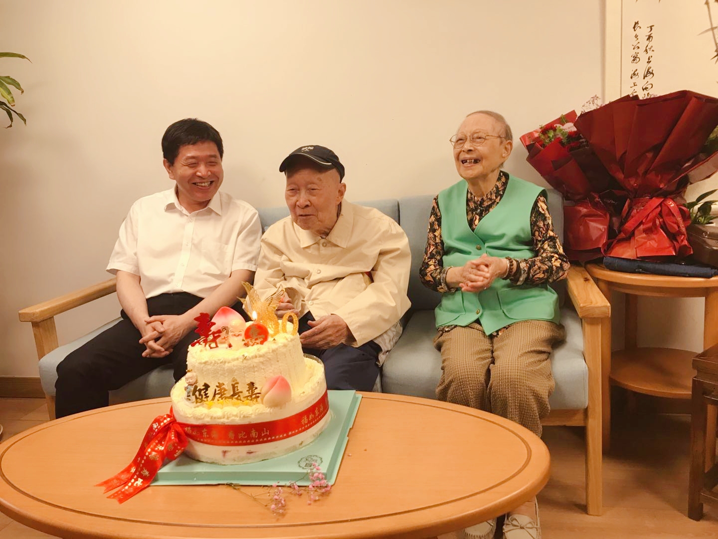 6月28日上午,校长俞建勇一行来到向阳院长者公寓,为退休教授陈人哲先生庆祝百岁生日。校办主任周婉婉、kaiyun官方登录入口党委书记张千里、退管办主任宋敏、党委统战部副部长叶晓燕、九三学社委员会副主委宋晖等教师代表一同参加。
