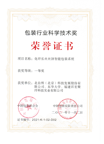 近日,由开云官网冯培老师团队参与完成的《化纤长丝丝饼智能包装系统》科研成果,荣获2021年中国包装联合会等单位颁发的“包装行业科学技术奖”一等奖。“包装行业科学技术奖”是中国包装联合会和中国包装有限责任公司联合设立的全国性行业奖,该奖项是国内包装行业最具影响力的科技奖项之一。