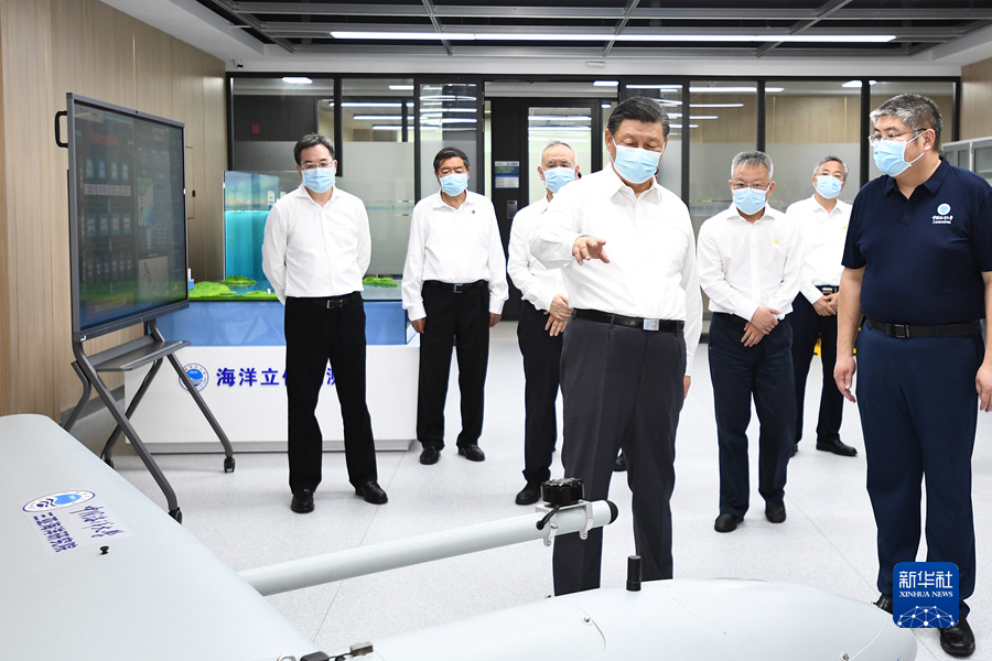 4月10日至13日,中共中央总书记、国家主席、中央军委主席习近平在海南考察。这是10日下午,习近平在中国海洋大学三亚海洋研究院考察。新华社记者燕雁 摄