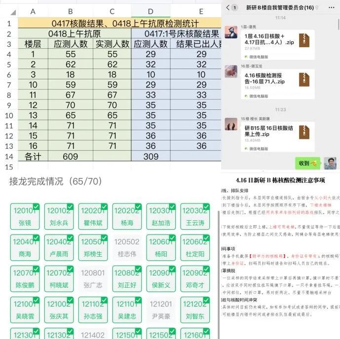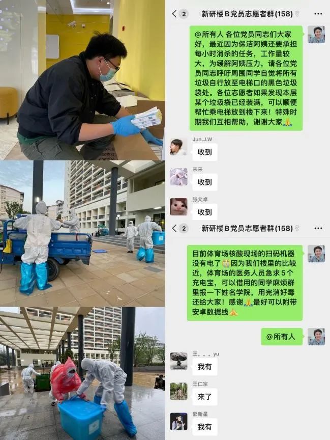 新研B栋的研究生涉及多个学院,存在多条线管理的难度。为提升工作效率,新研B栋依托网格化管理模式,迅速建立起由158名楼内学生党员组成的志愿者储备库,成立宿舍楼宇党员先锋岗,党员积极配合并分担所在学院、楼层的各项数据统计工作,高效落实相关防疫措施,确保及时准确掌握每名同学的具体情况。