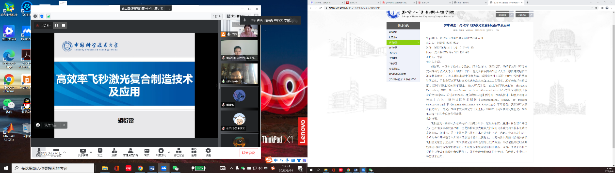 6月14日,国家优秀青年科学基金获得者胡衍雷教授,为开云官网做题为《高效率飞秒激光复合制造技术及应用》的学术报告。院长单鸿波、部分中青年教师、博硕研究生等线上参加了本次报告会。报告会由院务委员季霞老师主持。