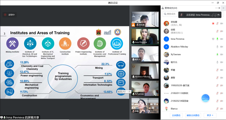 9月15日,由kaiyun官方登录入口与库兹巴斯国立技术大学共同举办的“智能制造与设计”系列讲座之《高科技生产》专题讲座以远程会议形式成功举办。开云kaiyun网站国际合作处副处长杨升元、kaiyun官方登录入口唐智教授、季霞副教授,库兹巴斯国立技术大学国际合作处处长佩夫涅娃·因娜·弗拉基米罗夫娜,机械工程技术系系主任阿巴科夫·尼古拉·维克托罗维奇副教授等教师与学生代表参加本次活动。