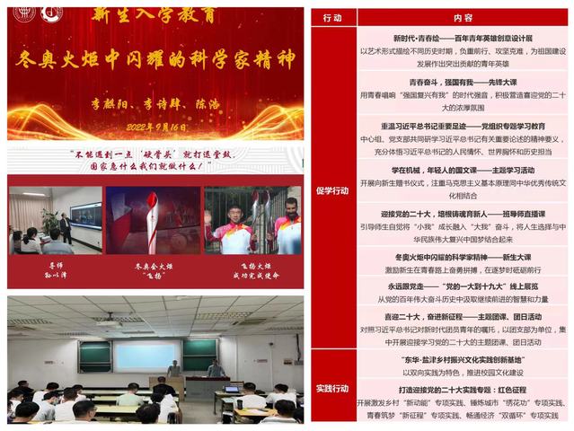为深入开展“喜迎二十大、永远跟党走、奋进新征程”主题教育实践活动,学院党委组织师生开展“新时代·青春绘——百年青年英雄创意设计线上巡展”,以艺术形式描绘不同时期为党、团做出突出贡献的青年英雄。开展“迎接党的二十大,培根铸魂育新人”班导师直播课,引导师生自觉将“小我”成长融入“大我”奋斗,将人生选择与中华民族伟大复兴中国梦结合起来;开展“学在机械,年轻人的国文课”主题学习活动,向新生赠送《年轻人的国文课》等书籍,注重马克思主义基本原理同中华优秀传统文化相结合。同时,学院进一步深化建设“东华-盐津乡村振兴文化实践创新基地”与“红色学习圈”党建育人基地,推动与云南省盐津县、松江区石湖荡镇、奉贤区渔墩村构建党建微联盟,并以双向实践为特色,打造迎接党的二十大“红色征程”社会实践专题,开展激发乡村“新动能”、锤炼城市“绣花功”、青春筑梦“新征程”、畅通经济“双循环”四类专项实践,以学科优势服务区域经济社会发展,以党建共建联建促实践实干实效。