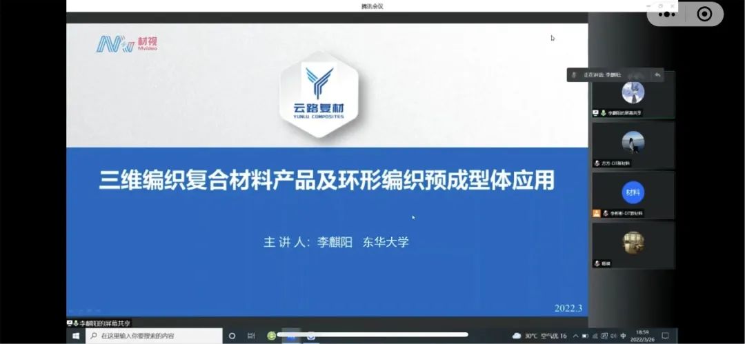 他还在“DT新材料”与“材视课堂”等平台开展“三维编织复合材料产品及环形编织预成型体应用”等讲座,用通俗的语言科普高端复合材料制作过程,在线收听收看人数逾万人次。