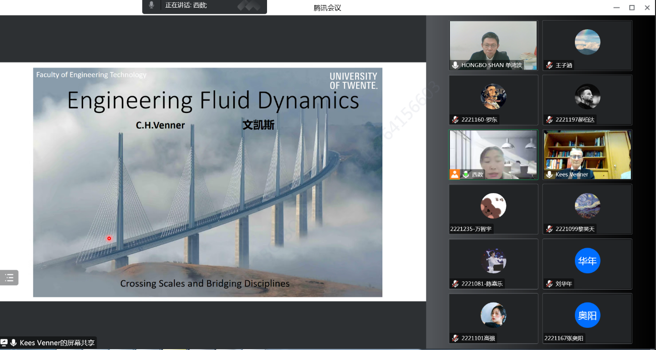 12月13日下午,荷兰特文特大学Kees Venner教授应邀为开云官网做了“Engineering Fluid Dynamics:Crossing Scales and Bridging Disciplines(跨学科跨尺度的工程流体力学)”专题报告。院长单鸿波教授、部分学科团队负责人、教师、高年级研究生近60余人参加了本次学术报告会。报告由王静教授主持。特文特大学的赵燕博士对报告全程做了同声传译。