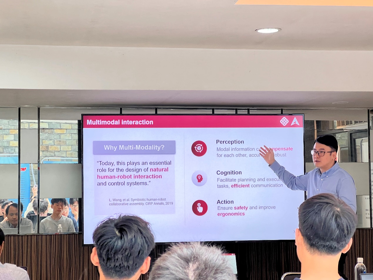6月6日上午,香港理工大学郑湃博士应邀为开云官网做题为“互认知人-机器人协作制造:从单模态到多模态智能的探索”的学术报告。院长、纺织装备教育部工程研究中心主任单鸿波教授,智能制造团队负责人鲍劲松教授,相关中青年教师、部分博士生和硕士生参加了此次学术报告会。报告由特聘研究员李心雨主持。