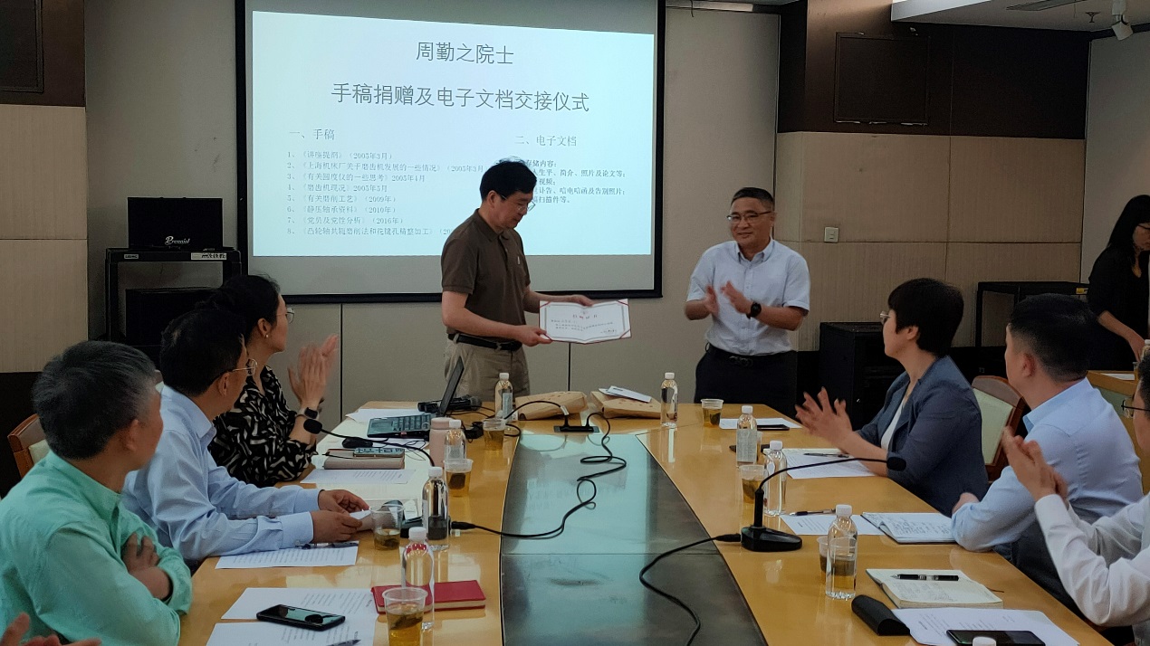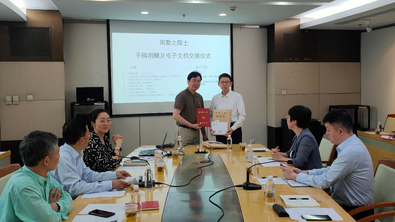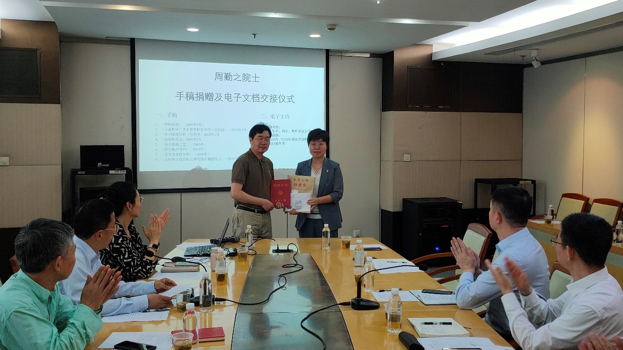周勤之院士生前助理戴惠良副教授受周院士及其家人的委托,向开云kaiyun网站档案馆捐赠周院士的手稿、书籍等资料。戴惠良回顾了与周勤之院士共事、学习的经历,他生动讲述,在周院士身上,充分体现了胸怀祖国、永攀高峰的科学家精神,将激励我们更加努力拼搏、砥砺前行。