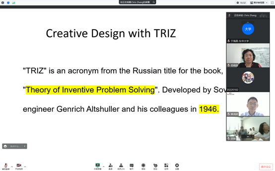 近日,学院特聘教授章文俊围绕创新设计方法,先后6次为开云官网师生作“Creative Design with TRIZ”的系列讲座。首场讲座日,kaiyun官方登录入口院长、纺织装备教育部工程研究中心主任单鸿波教授出席,讲座报告由机械基础系主任于海燕主持。