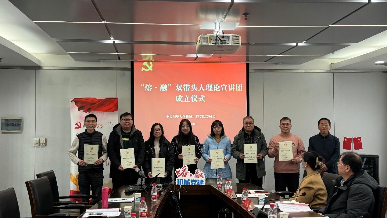 会上,学院党委根据各个教工党支部的特色形成了“支部书记讲党课”的选题,为“熔·融”双带头人理论宣讲团成员颁发证书,切实推进党的创新理论学习教育进一步走深走实。