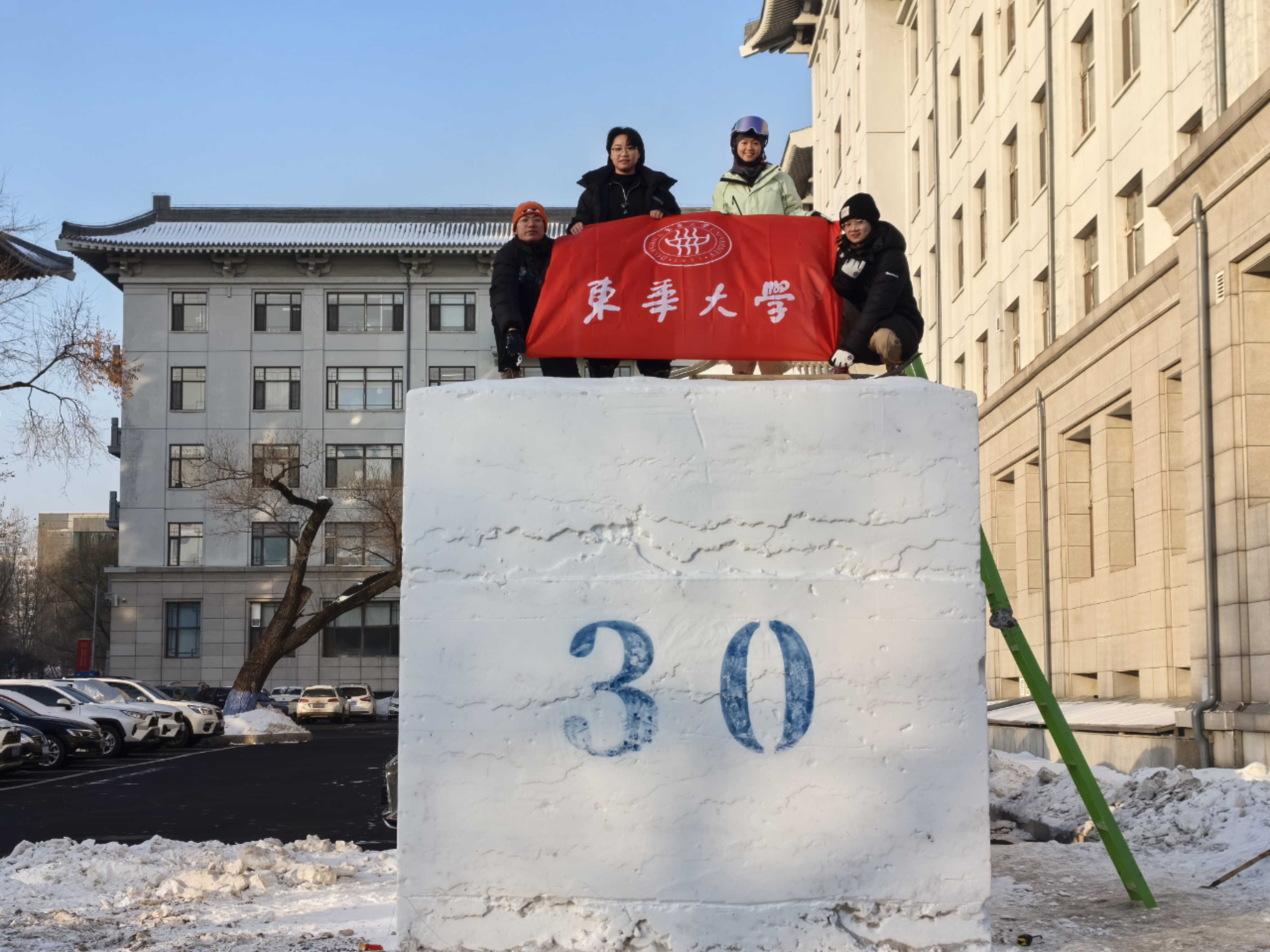 比赛期间,开云官网代表队克服了气候、场地、安全、装备、竞赛时长等多种实际困难,在指导教师的带领下,充分发挥设计专业的学科专业特长,团队高度协同、加班加点昼夜奋战,最终完成了雪雕作品《翘首以盼》。作品以承载了中国人民的智慧和情感生肖龙作为造型主体,用流畅的曲线勾勒十二生肖,形象化的用冰雪诠释了传统文化,一条条流畅的“雪道”终将带领我们走向新未来。龙头朝东,翘首以盼,盼望着祖国的强大,科技的腾飞,人民幸福安康。