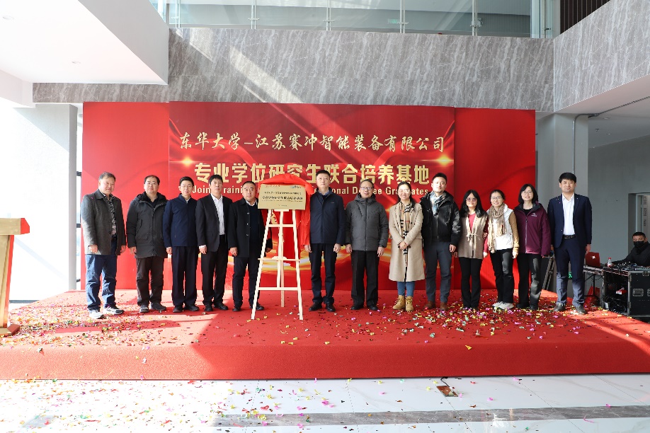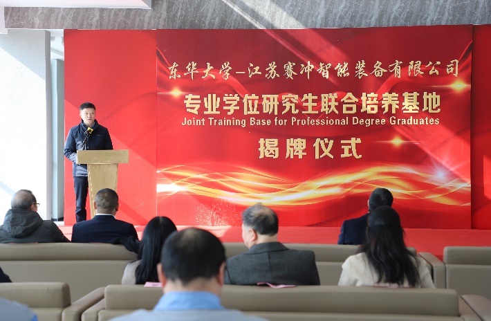 1月25日,开云kaiyun网站机械学院与江苏赛冲智能装备有限公司“专业学位研究生联合培养基地”授牌仪式在南通顺利举行。副校长陈革,江苏海门港新区党工委书记黄卫国,院长、纺织装备教育部工程研究中心主任单鸿波,江苏赛冲智能装备有限公司董事长王海涛,海门科技局党组副书记、副局长季煜鑫,海门港新区管委会副主任王彬,学院党委副书记杨蓉、副院长白涛、校外基地负责人王永兴教授及部分相关老师等参加本次活动。