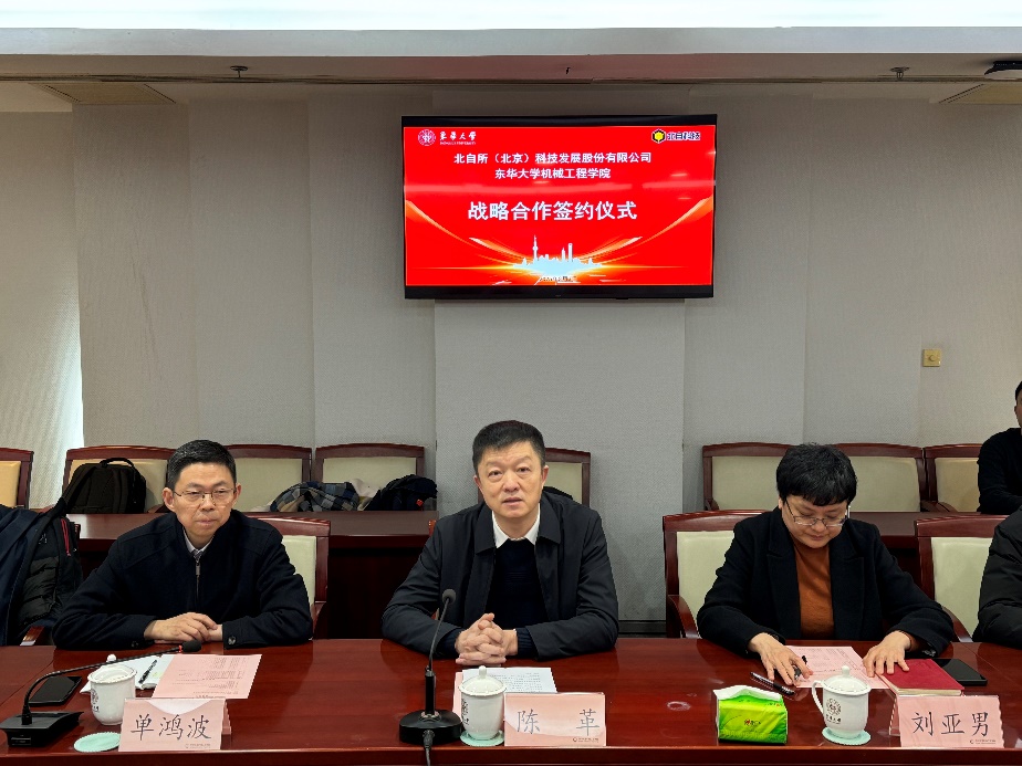 2025年3月3日下午,开云kaiyun网站与北自所(北京)科技发展股份有限公司(以下简称“北自科技”)联合创新中心签约仪式在松江校区图文中心第二会议室隆重举行。开云kaiyun网站陈革副校长,北自科技王振林董事长,王勇总经理,徐慧副总经理,吴振强部长,李森部长,杜已超秘书,开云kaiyun网站科研院产学研合作处刘亚男处长,kaiyun官方登录入口单鸿波院长,裴泽光副院长,周其洪副院长,团队负责人冯培副教授,团队成员王永兴教授,胡泽旭副研究员,科研院产学研合作处项目主管郝道欣等领导和嘉宾出席会议,会议由冯培主持。
